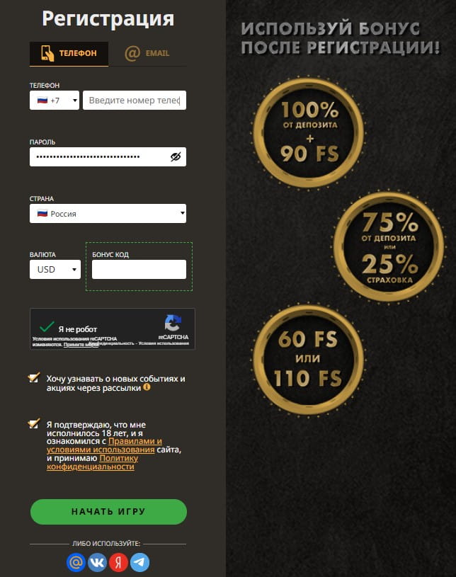 Новым пользователям доступен приветственный пакет: бонус на первый депозит, бесплатные вращения и дополнительные предложения на следующие пополнения.